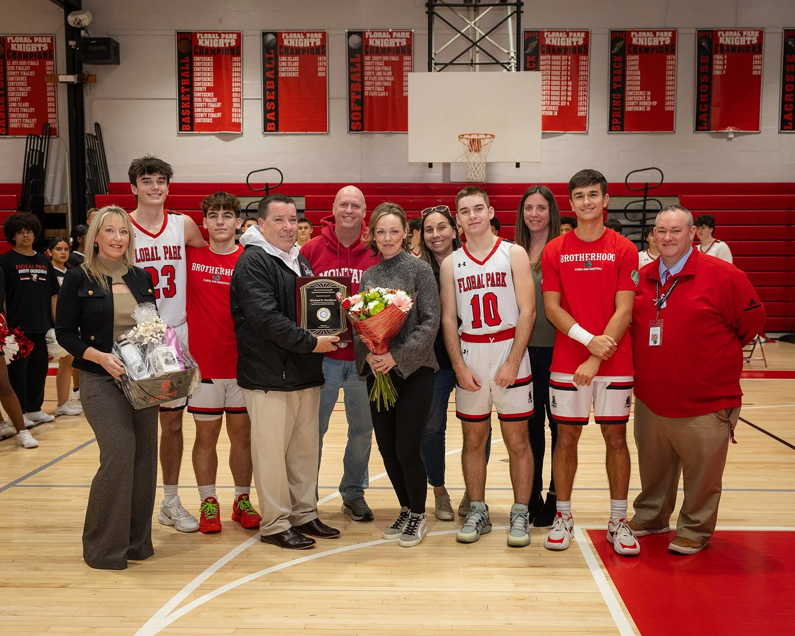 On December 22nd, Floral Park Memorial High School and the Booster Club honored the Michael R. Davidson Foundation with a heartfelt dedication ceremony. Thanks to their generous donation—alongside support from the Booster Club—the gymnasium now boasts a beautifully upgraded sound system. The varsity boys' basketball team presented the foundation with a commemorative plaque, and the evening closed with warmth, appreciation, and a renewed sense of community pride.